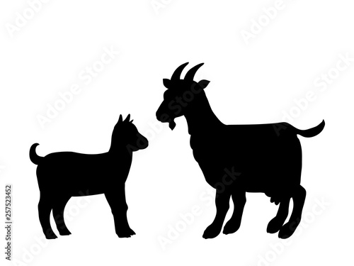 Goat goatling farm mammal black silhouette animal. Vector Illustrator.