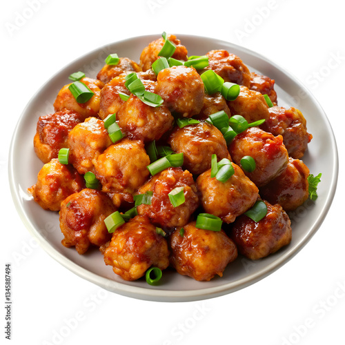 Gobi Manchurian appetizer on plate isolated on transparent background