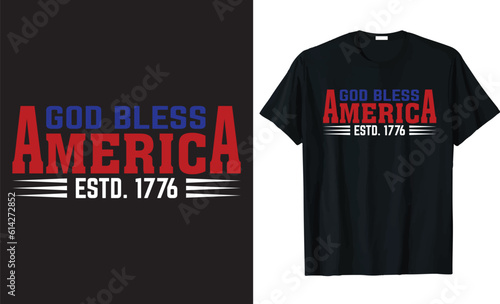 God bless America typography lettering, Illustration with american flag colors. t-shirt design.