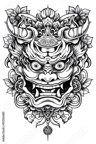 Gohonshojo Mask very simple traditional tattoo flash styles illustration