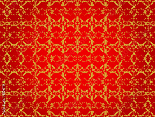 Gold and geometric grid pattern and red background. The creativity f the cirlces shape and seamless