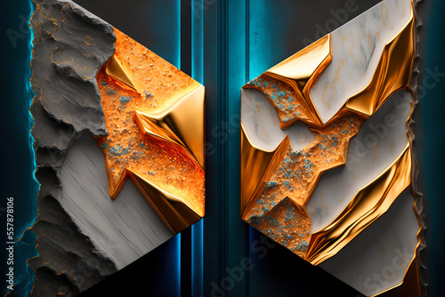 Gold and turquoise, a combination of precious stones, opal, metal. Abstract luxury background. Gen Art