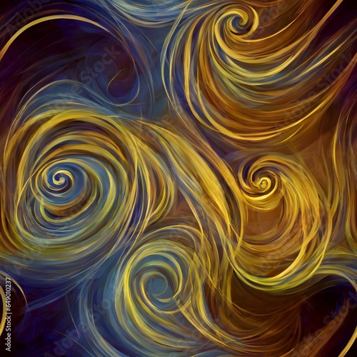 Gold blue swirls spirals whirls seamless background