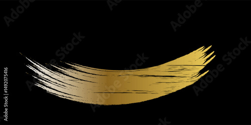 Gold Brush Stroke with Texture Effect on Black Background. Abstract Art Banner in Grunge Concept