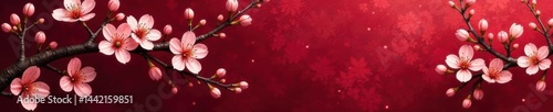 Gold cherry blossom branches on deep burgundy, seamless luxury pattern , detail, floral pattern, high-end