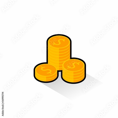 Gold coins stack Black Stroke & Shadow icon vector isometric.