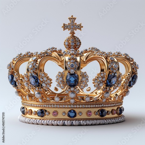 Gold Crown With Blue Gems and Pearl Trim
