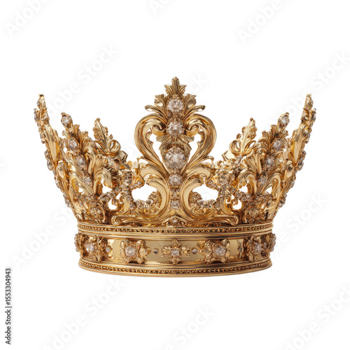 Gold crown with diamonds and pearls. isolated-on-ransparent-3d-background