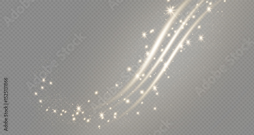 Gold curved light line, rope, ribbon. Smooth festive gold line png with light effects. Light golden swirl png. Curved golden line with light effect. Garland gold. PNG