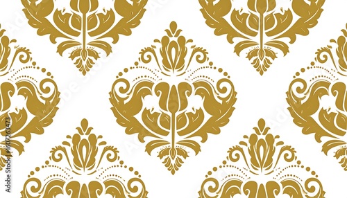 Gold damask pattern on white