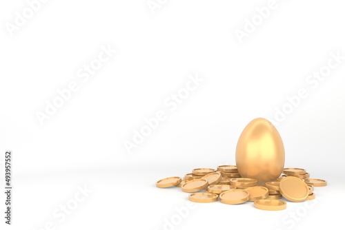 Gold egg with coins isolated on white background.