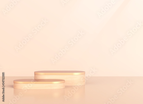 Gold Elegant geometric cylinder podium for promotion product display, Minimal scene with podium for products showcase, product presentation, cosmetic product show, stage pedestal 3D Rendering.