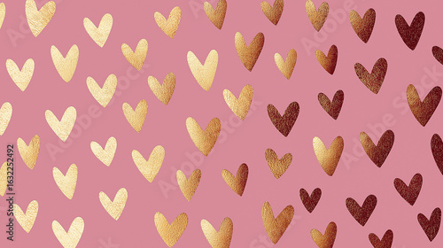 Gold foil heart pattern on pink background