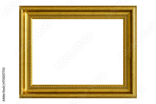 Gold frame for a picture in a classic baroque style on a white blank background.
