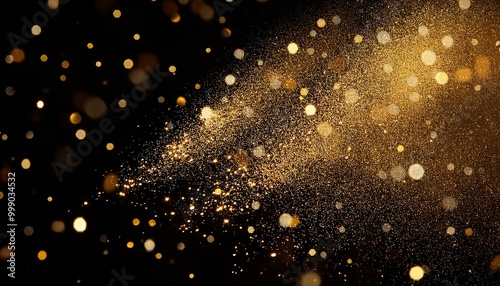 Gold glitter on a black background. Glitter of dust confetti. Sequin pattern texture. background with particles
