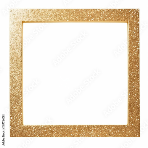 Gold Glitter Square Frame Empty Picture Frame Mockup Isolated on White