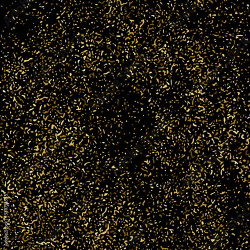 Gold glitter texture isolated on black. Amber particles color. Celebratory background. Golden explosion of confetti. Design element. Digitally generated image. Vector illustration, EPS 10.