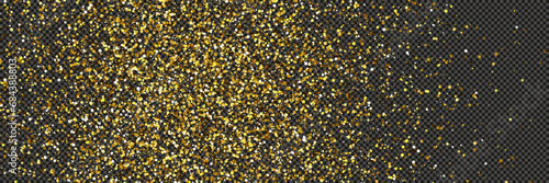 Gold glittering dust with stars on transparent backdrop