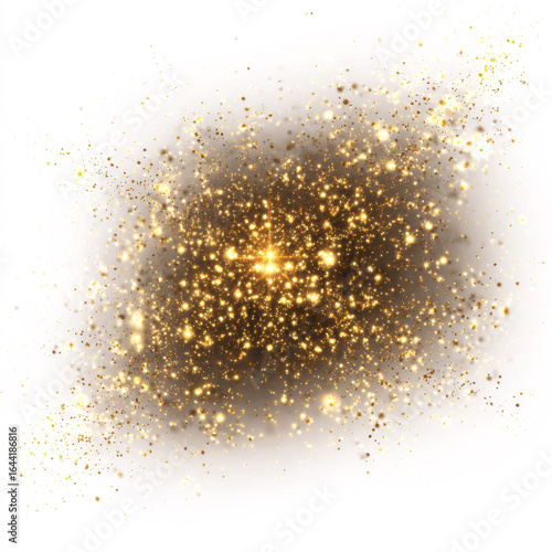 Gold glittering light particles, star dust magic sparks. Glow glitter light effect. Gold luminous points. Sparkling magic dust particles isolated on transparent background