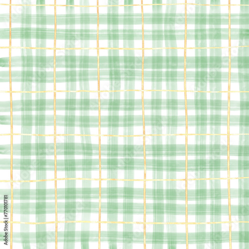 Gold Green Plaid Gingham Check Hand Drawn Background Overlay