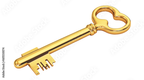 Gold Key on Transparent Background PNG Style 3D Rendering