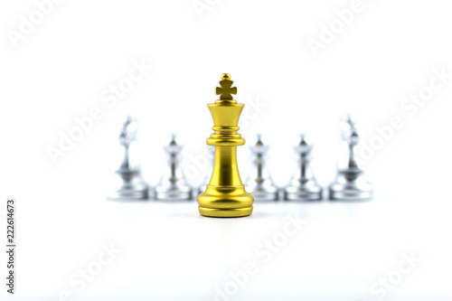 Gold king in chess game with Concept for company strategy,business victory or decision the path to success.