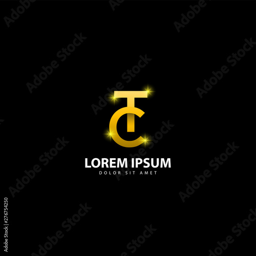 Gold Letter T Logo. TC Letter Design Vector with Golden Colors