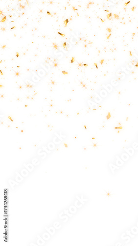 gold metallic confetti rain explosion falling isolated on transparent background, png golden birthday party and anniversary celebration overlay vertical social media design element