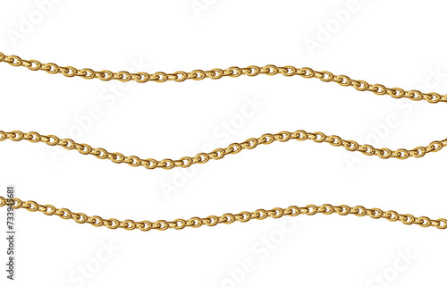 Gold necklaces Isolated on white. Golden chain illustration. Golden necklace for ads, flyers, web site, sale banners.