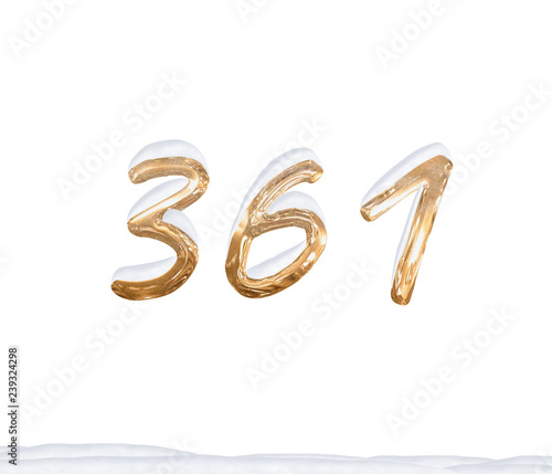 Gold Number 361 with Snow on white background