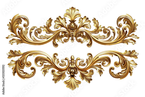 Gold ornate baroque style decorative elements on black background isolated on transparent background