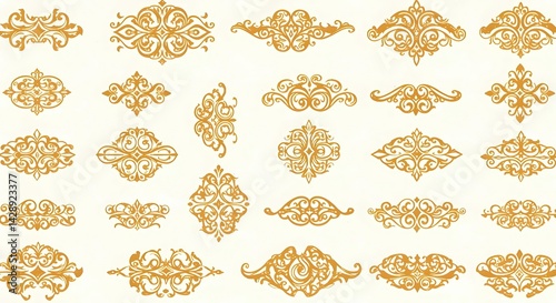 Gold Ornate Vintage Floral Design Elements.