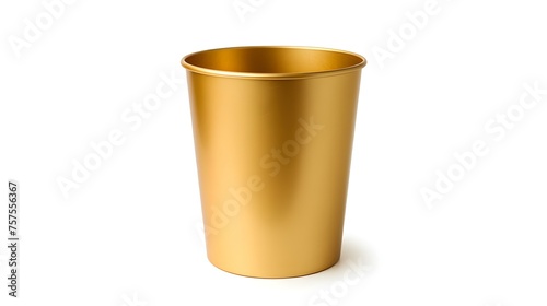 Gold Paper Bin on a white Background. Office Template with Copy Space