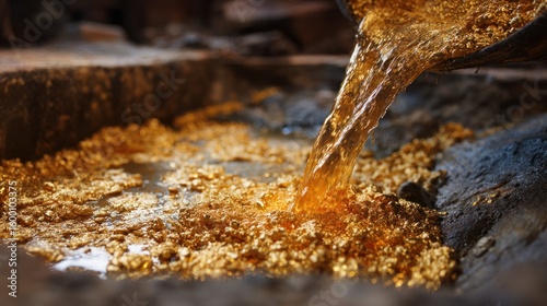 Gold pouring into gold flakes basin