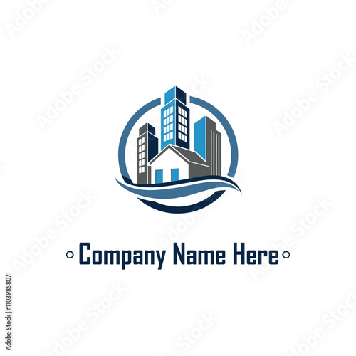 Gold real estate logo with a highrise and house outline