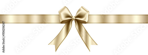 Gold satin ribbon with elegant bow for gift wrapping, transparent background, png
