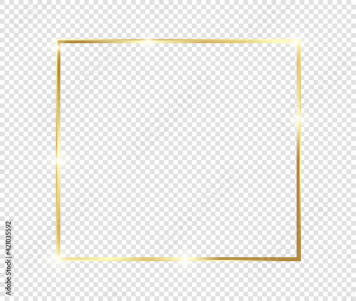 Gold shiny glowing frame with shadows isolated on transparent background. Golden luxury vintage realistic rectangle border. illustration - Vector