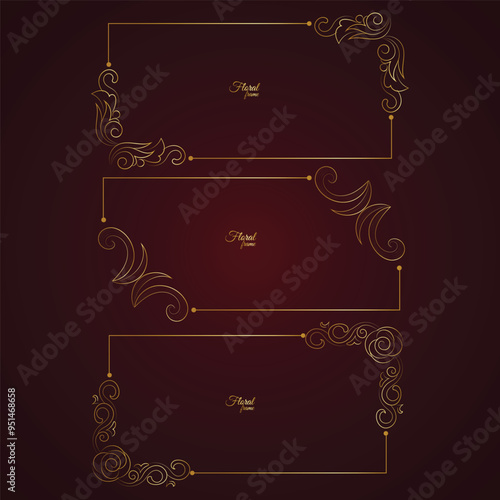 Gold shiny glowing vintage frame with flower isolated floral background Golden luxury frame