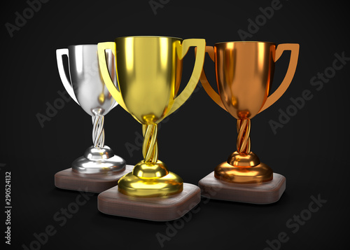 Gold Silver & Bronze Trophy Champions Winner 3D Render