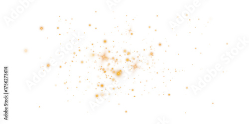 Gold sparks and stars glitter with a special light effect. Sparkles on a transparent background. Christmas abstract.