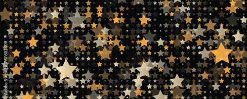 Gold Star Vector. Shine confetti pattern. Falling golden stars. Simple dark background. Eps10.