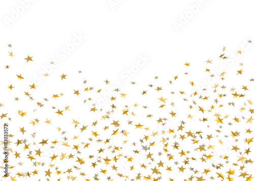 Gold stars falling confetti isolated on white background. Golden explosion confetti on floor. Abstract decoration. Holiday stars for Christmas festive party. Shiny paper glitter Vector illustration