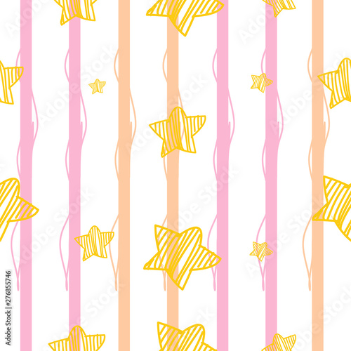 Gold stars seamless pattern on stripe pastel background