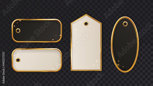 Gold Tag Gift Sale Price Luxury 3d Set Frame Label Border Vintage Christmas Xmas Vector Badge