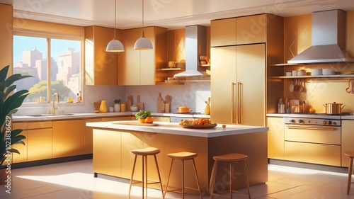 gold themed aesthetic minimalist kitchen interior concept illustration background
