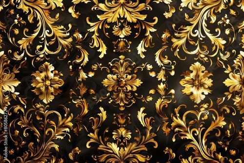 Gold vintage greeting card on a black background exudes elegance and sophistication with its ornate patterns and regal color palette, Sharpen art