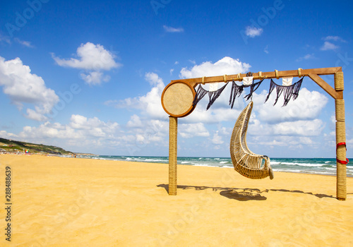 Gold yellow beach and clean blue sky, summer vacation concept photo. It's took at "Kilyos, Burc Beach. Istanbul"