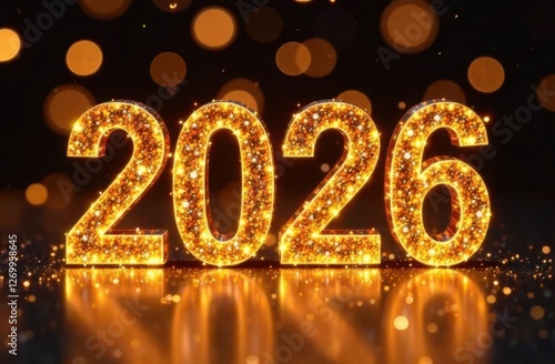 Golden 2026 sparkling on festive background for new year celebration
