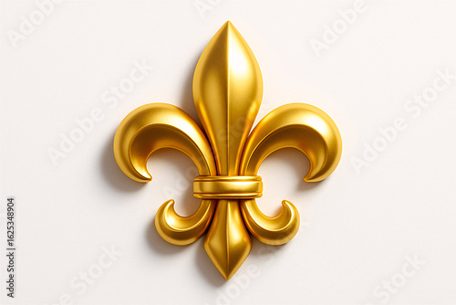 Golden 3D Fleur-de-Lis Symbol on White Background – Royal and Elegant Decoration