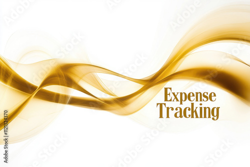 Golden abstract waves flow across a white backdrop, emphasizing the concept of expense tracking with elegant typography.